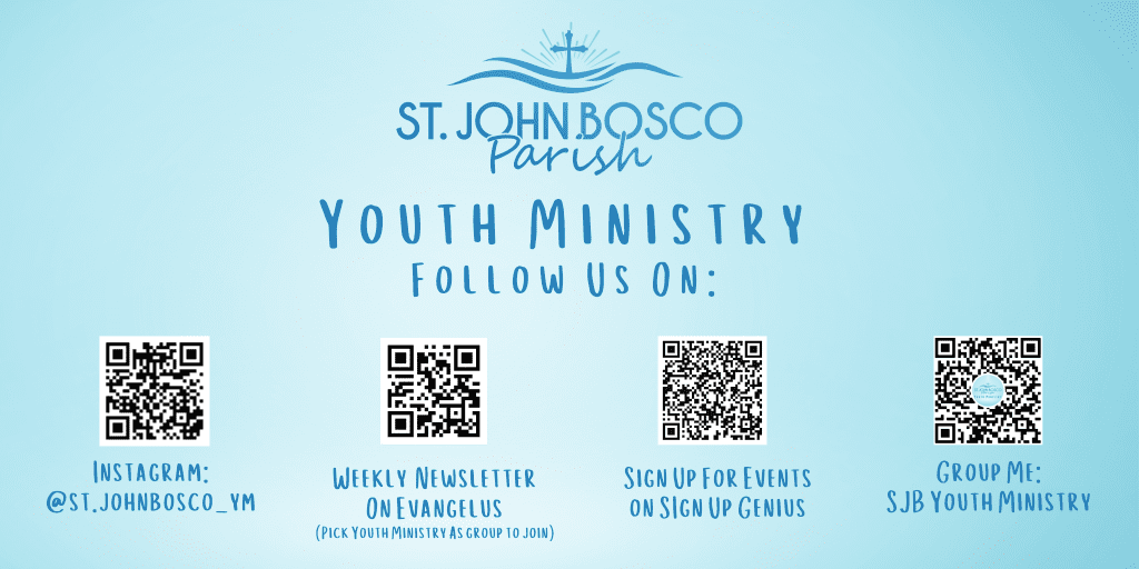 Want Text Updates? Go to: eva.us./johnbosco and select Youth Ministry